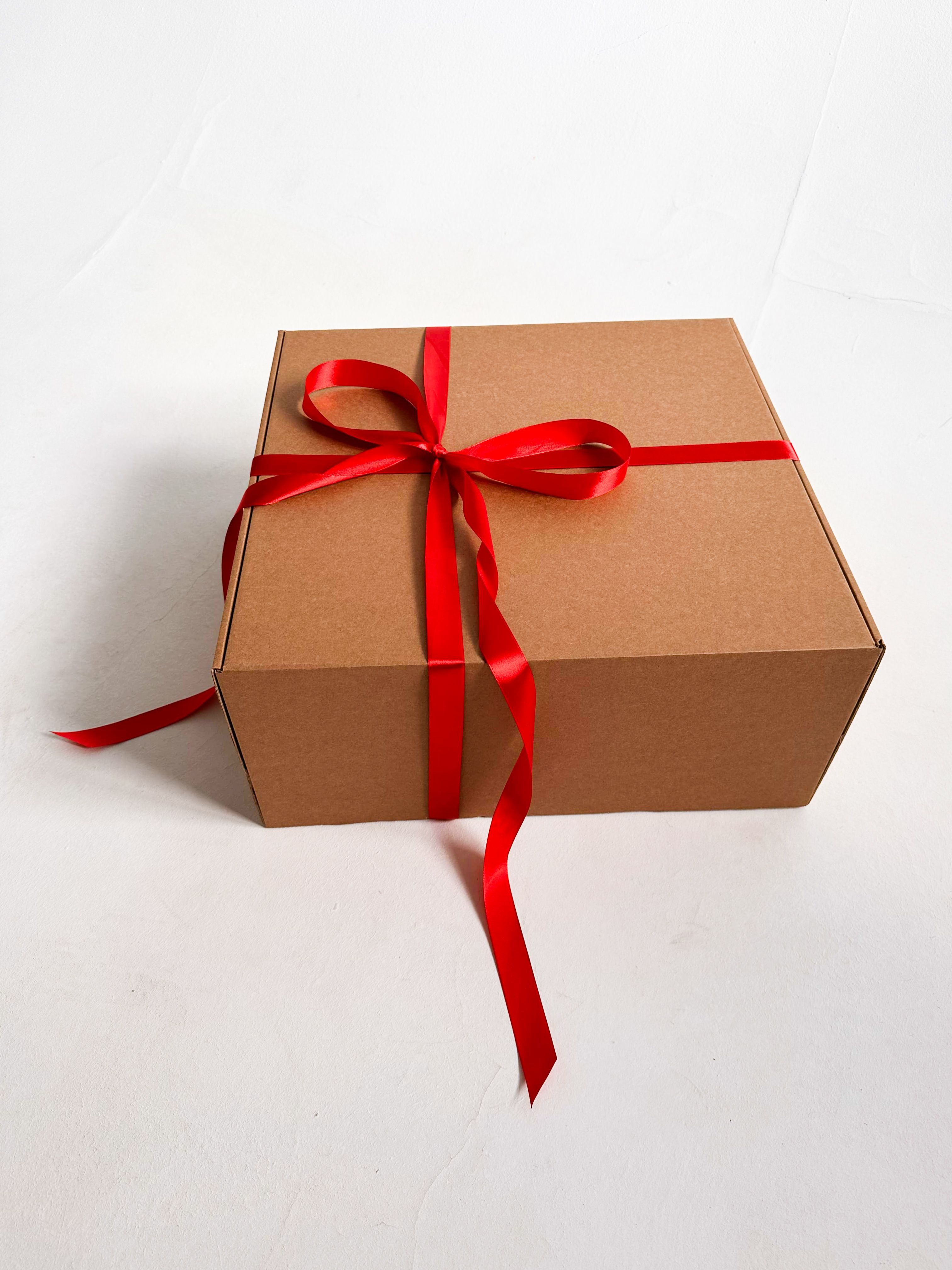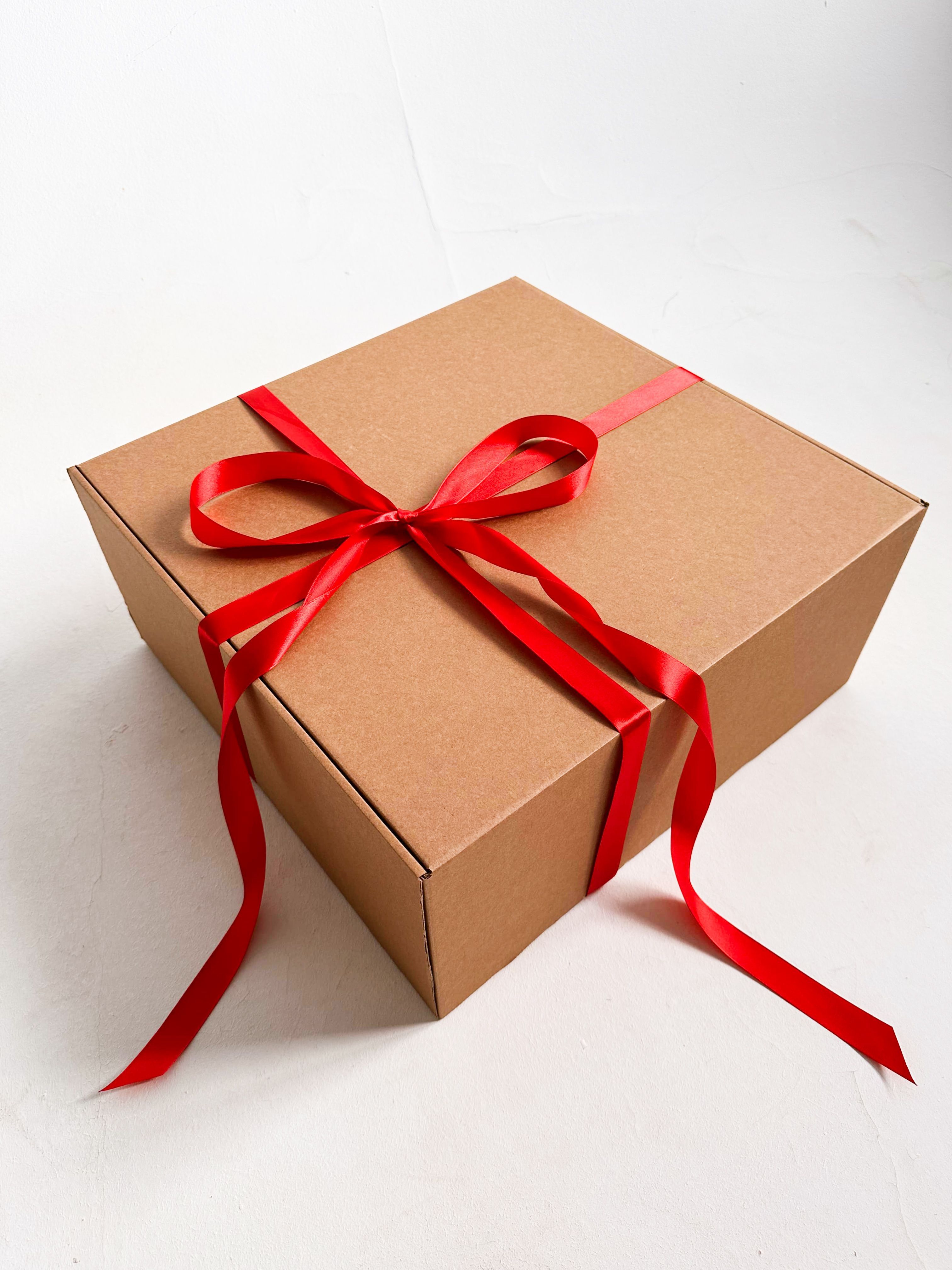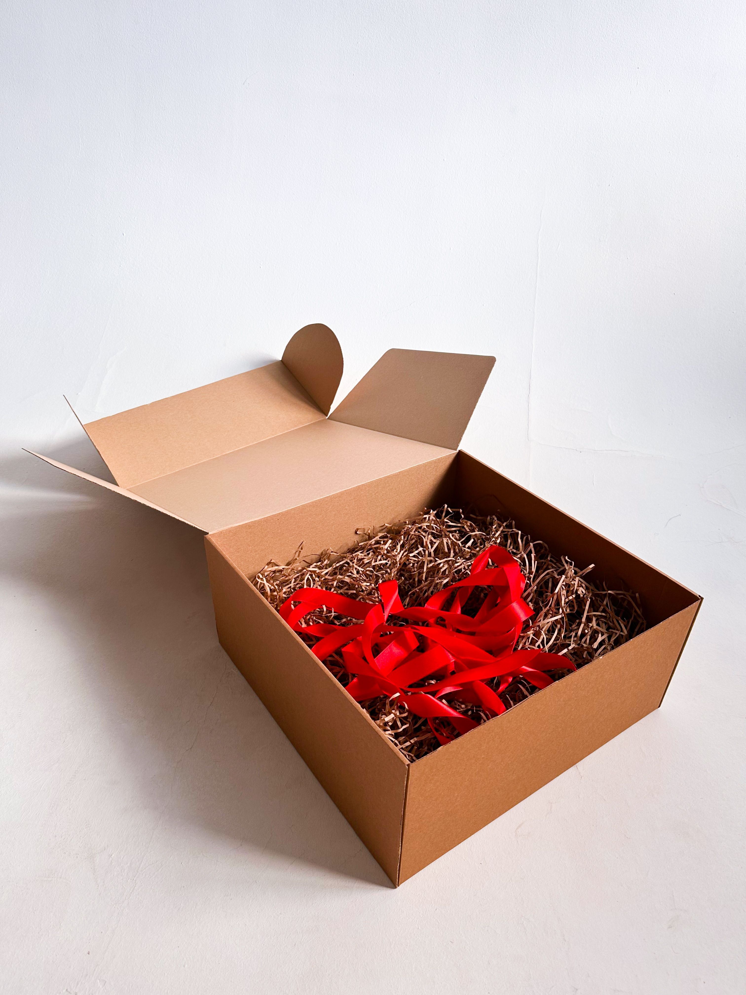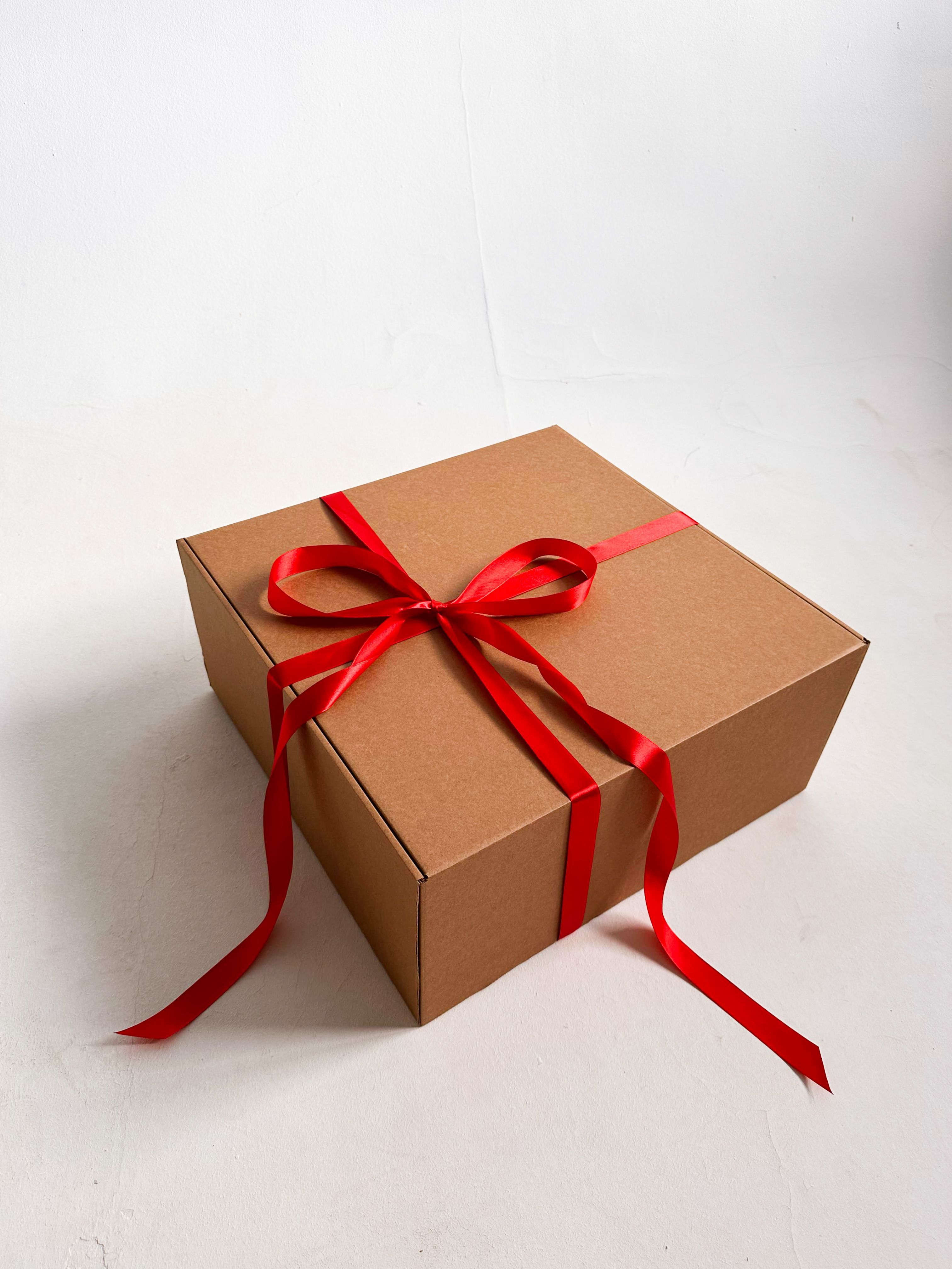 Огромная подарочная коробка GILEV 45х45х20см с красной лентой и наполнителем крафт
