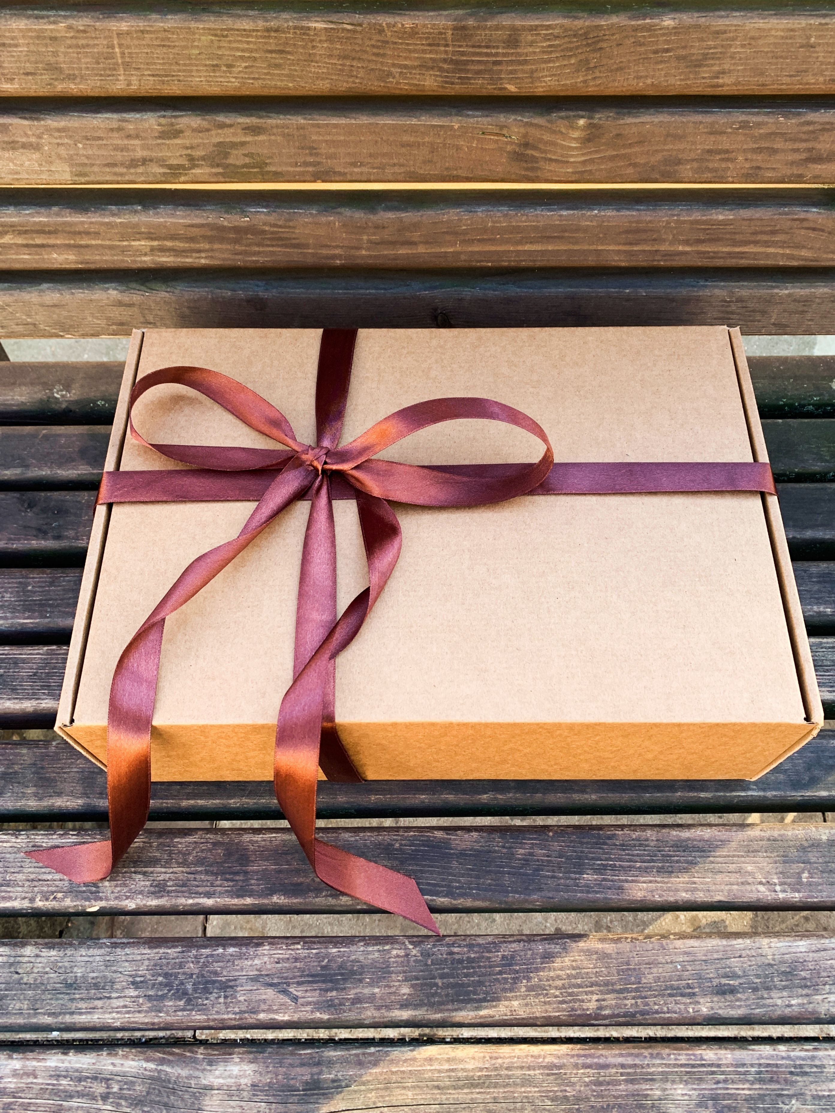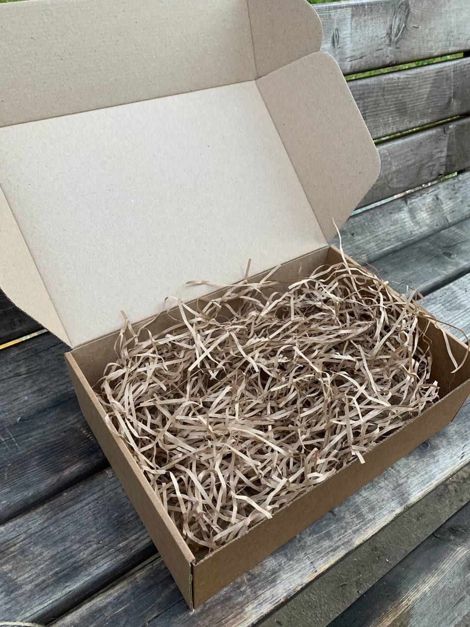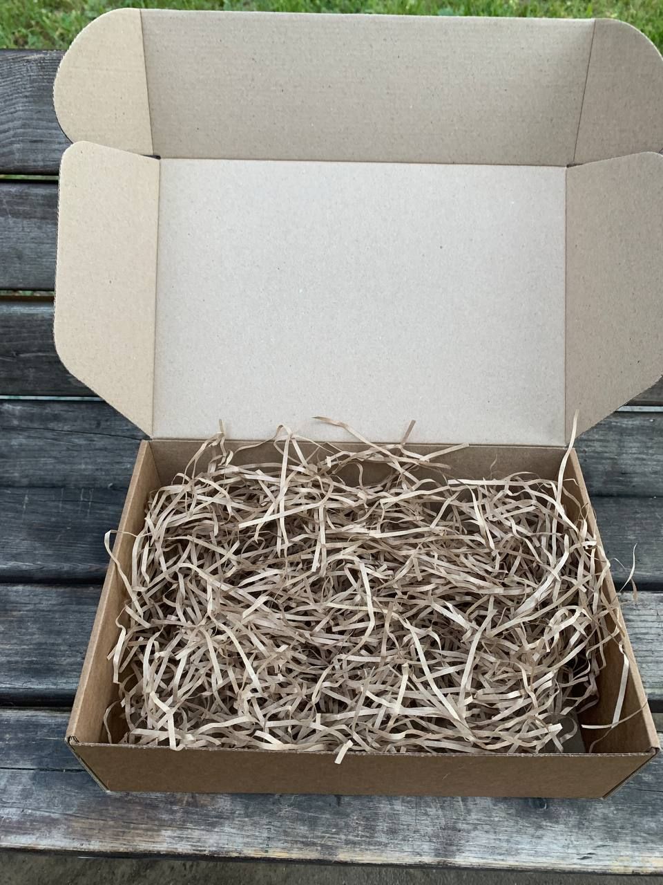 Подарочная коробка 32х22х10 см с наполнителем крафт и коричневой лентой - комплект подарочных коробок из 2 штук Картонная коробка с бумажным наполнителем и атласной лентой – отличная упаковка для подарка. В крафтовой коробке презент будет смотреться стильно и лаконично.
