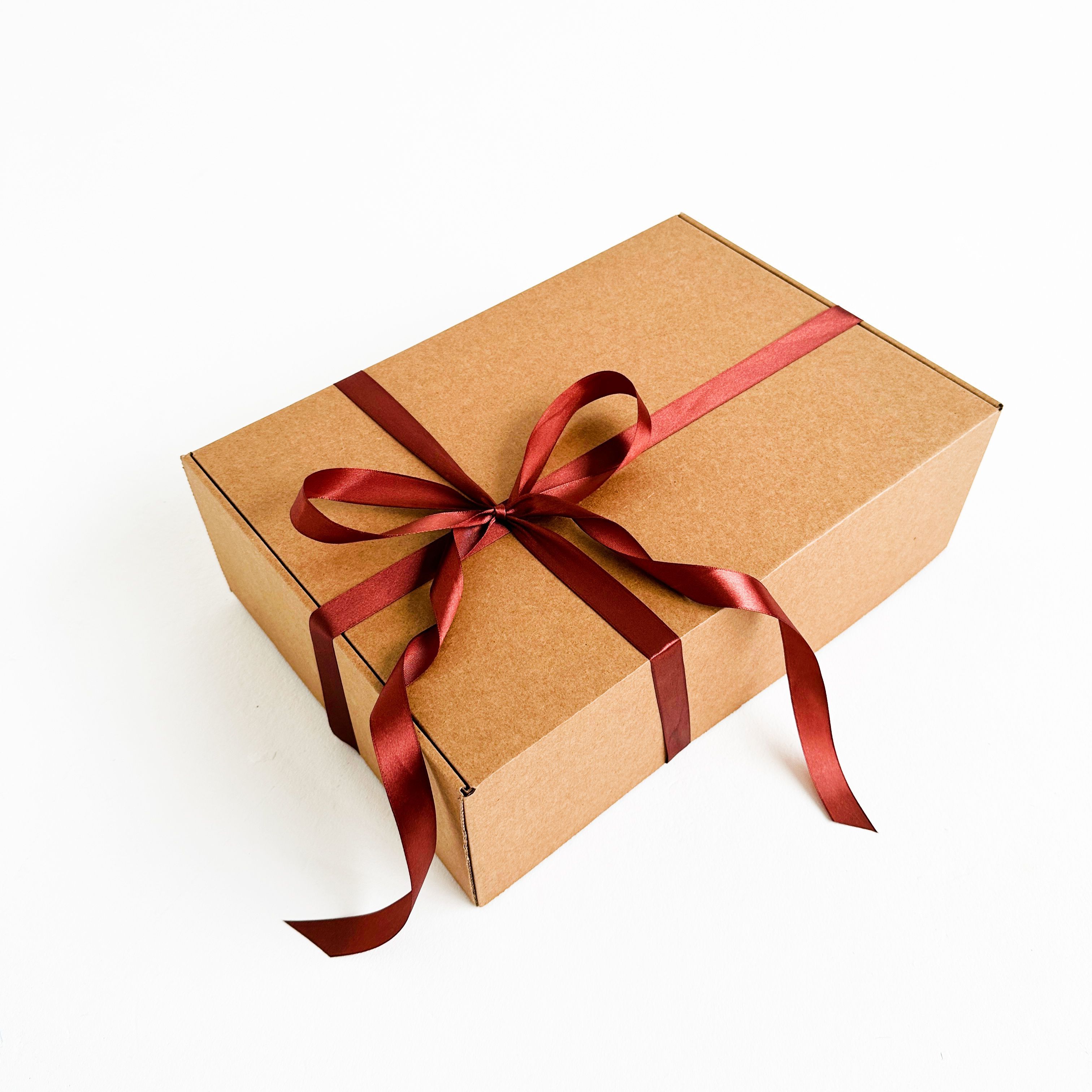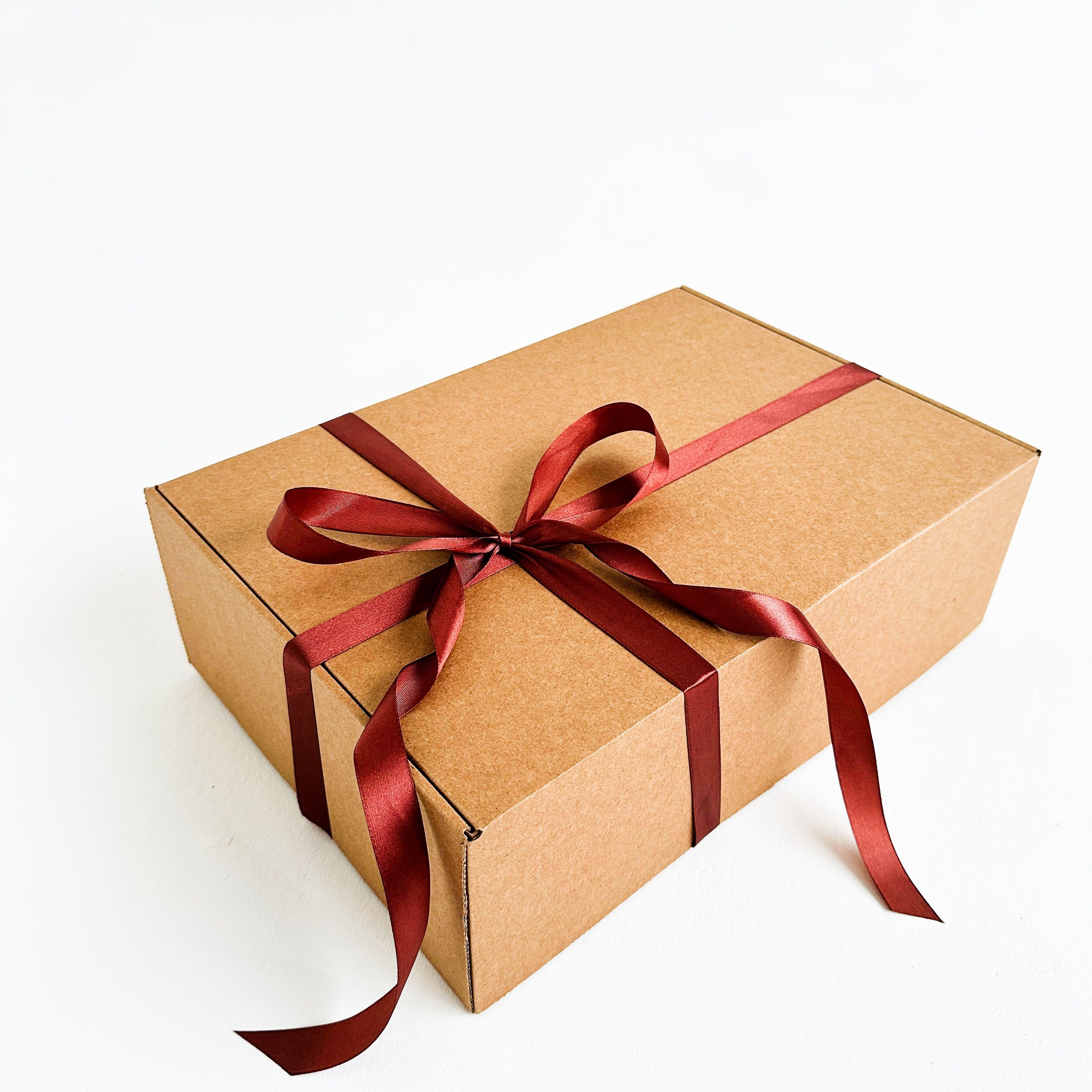 Подарочная коробка GILEV 37х26х12см с наполнителем и коричневой лентой