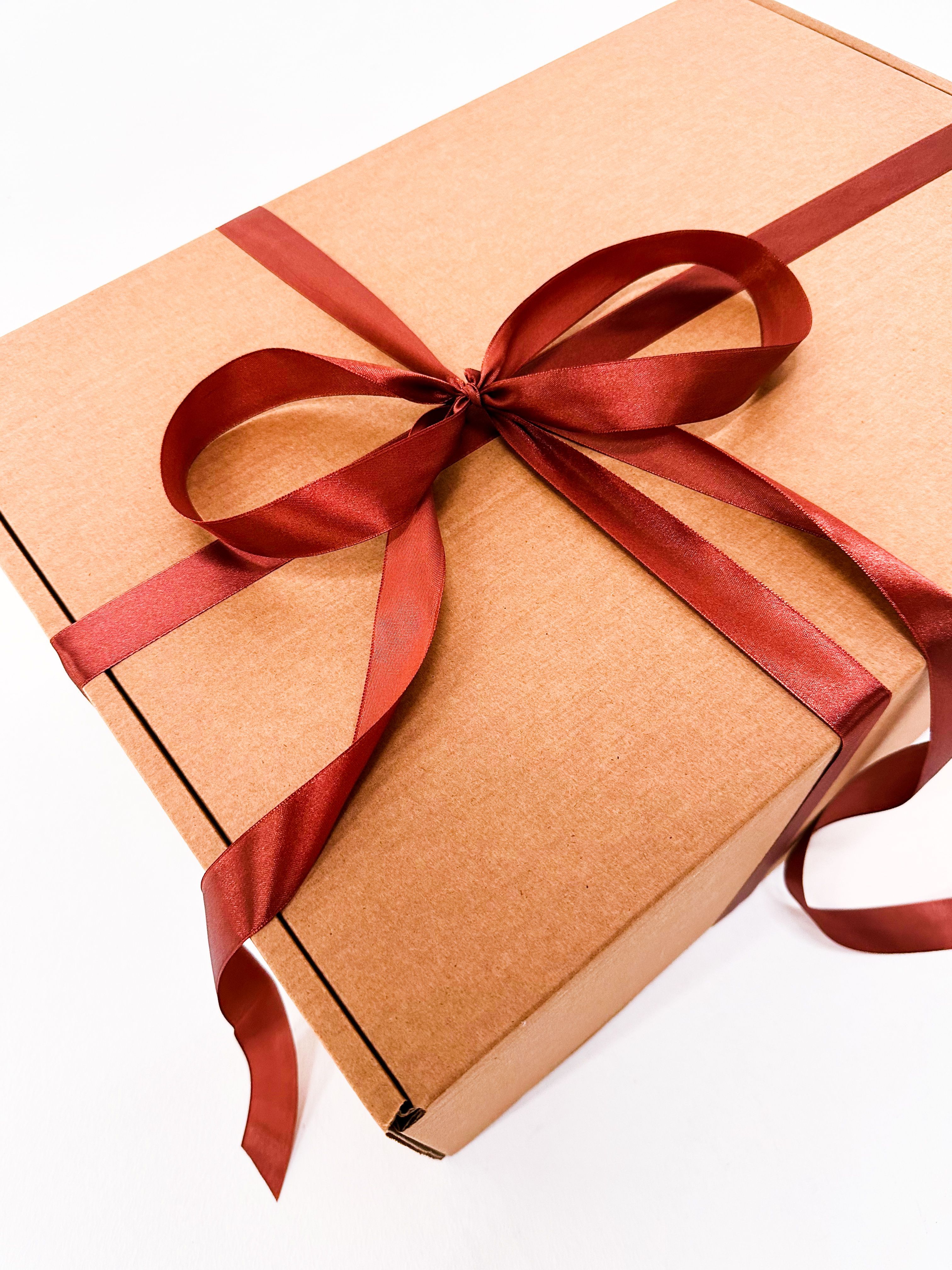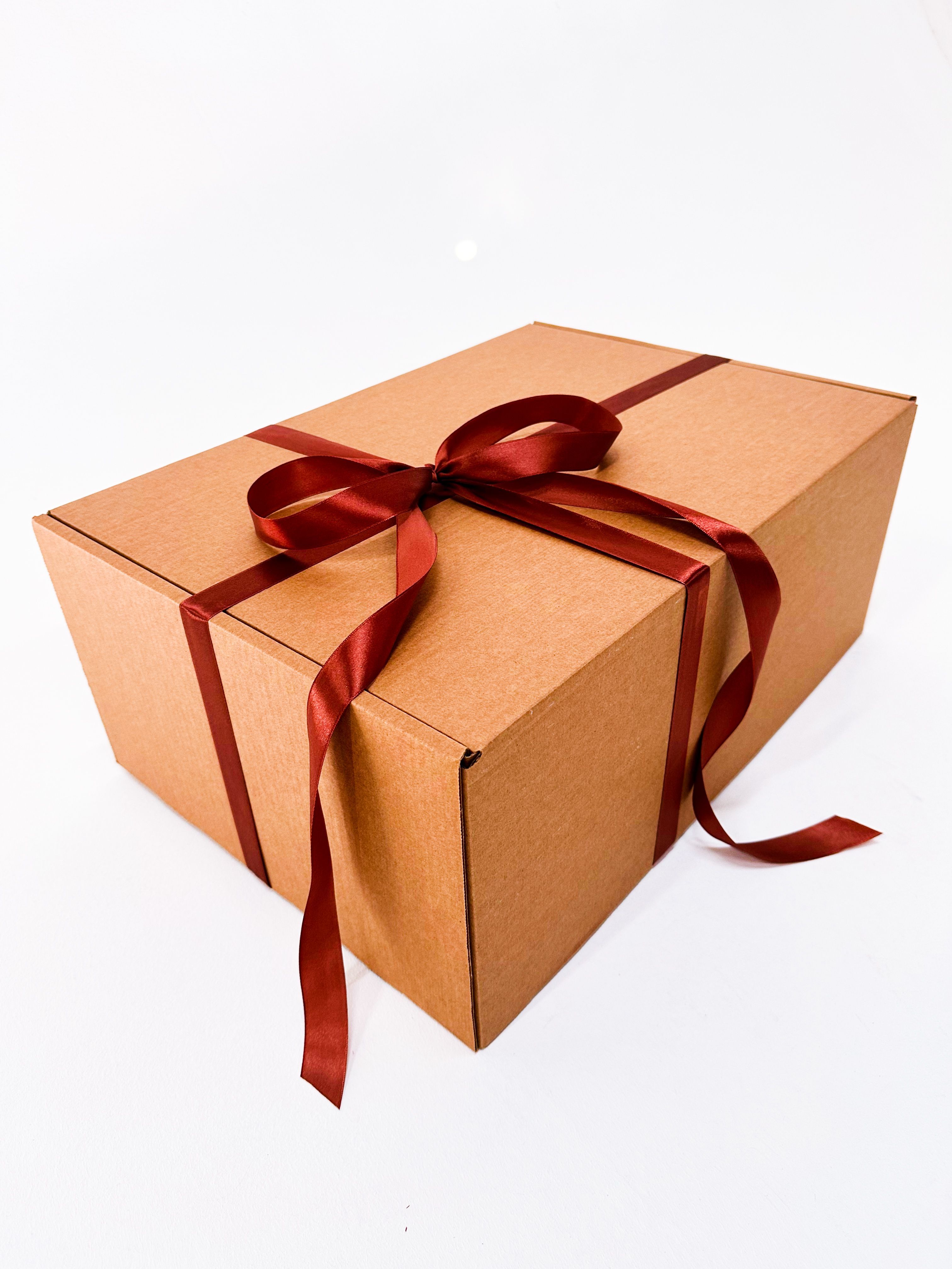 Огромная подарочная коробка GILEV 52x38x22 см с наполнителем и коричневой лентой