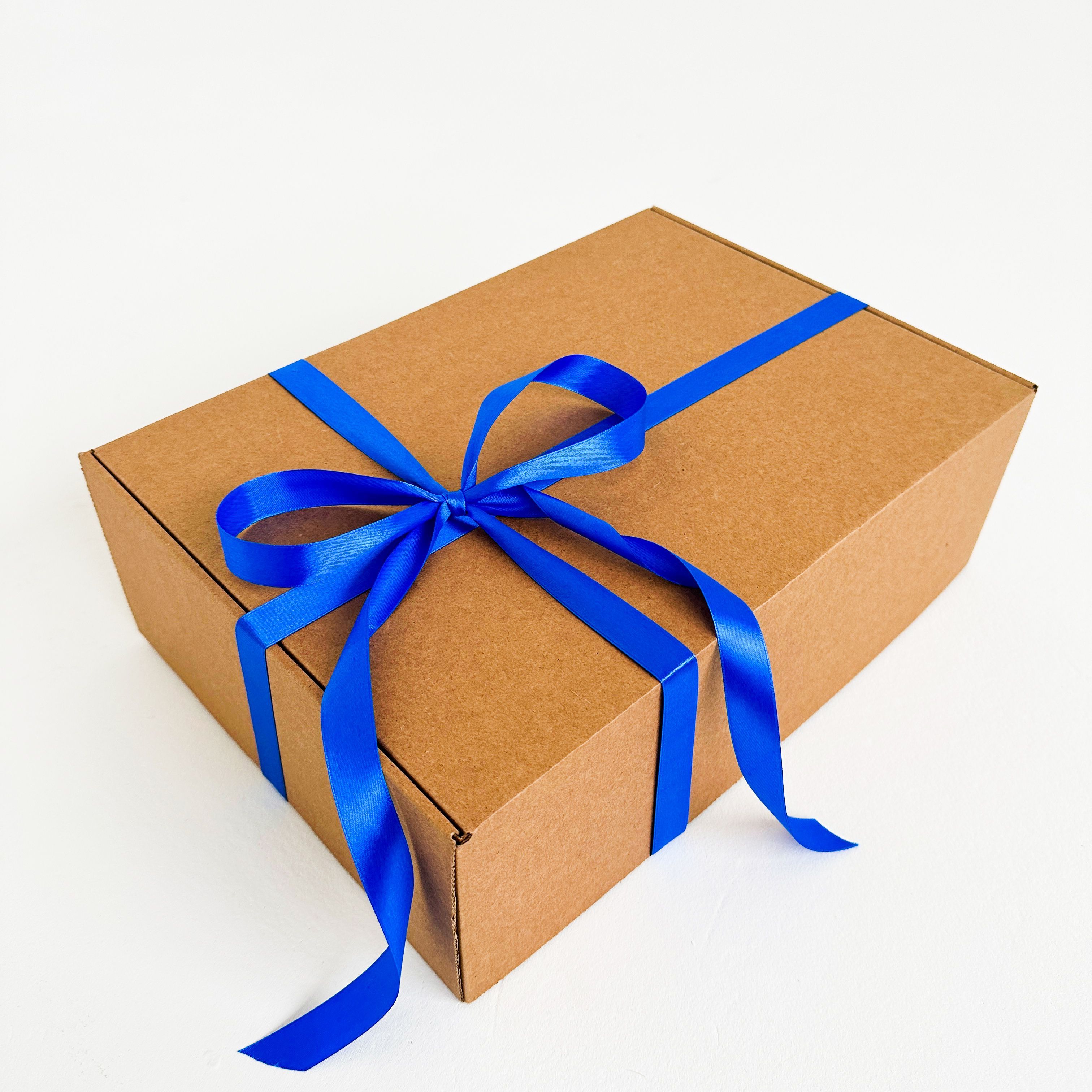 Коробка изготовлена из высококачественного картона, который обеспечивает прочность и надежность. Крышка коробки легко закрывается и защищает содержимое от повреждений и пыли. А чтобы придать ей завершенный вид, мы добавляем к каждой коробке стильный синий бант из атласной ленты, который подчеркивают эстетическую привлекательность и делают ваш подарок неповторимым.
