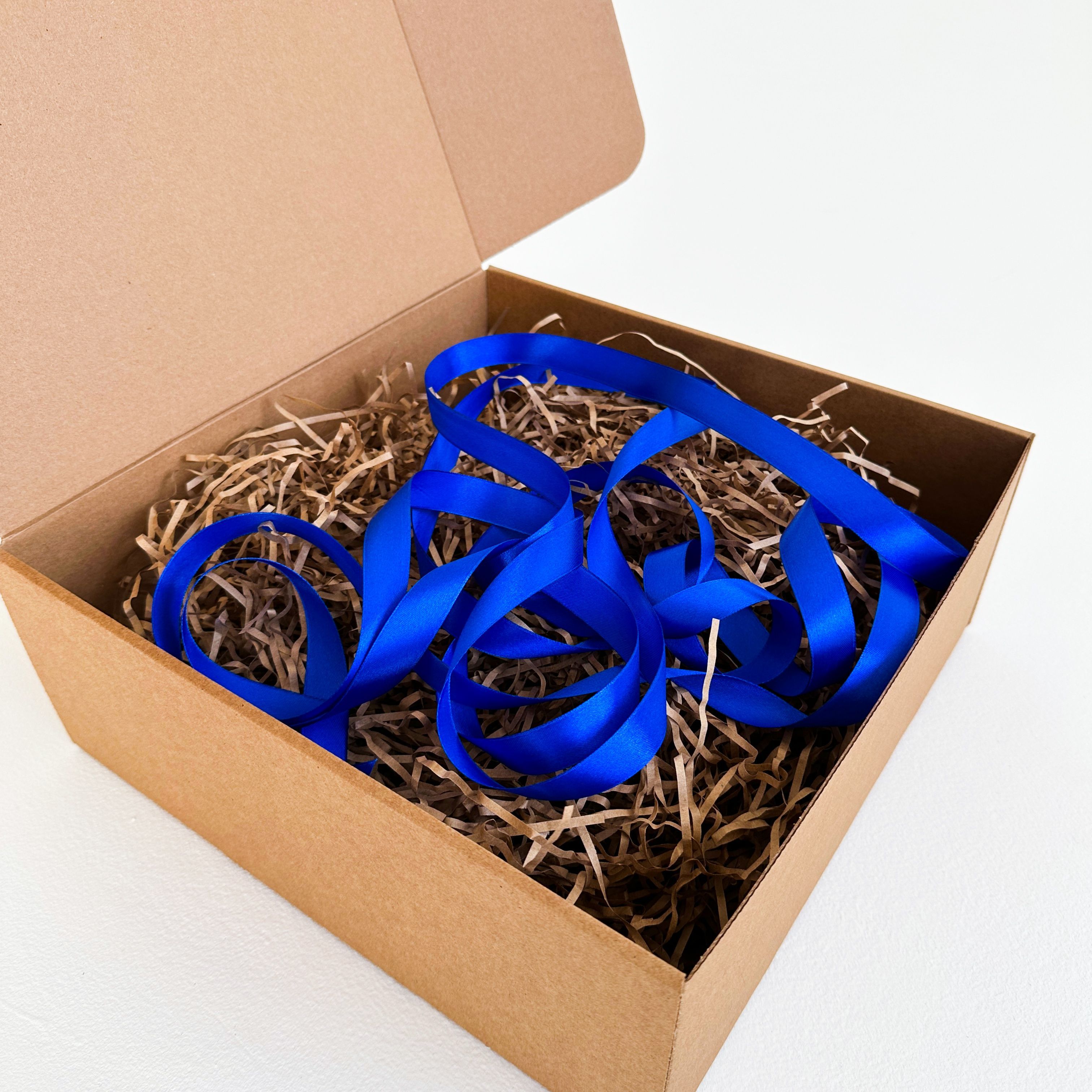 Особое очарование этой коробки придает ей синяя атласная лента. Ее искристый глянец и невероятная элегантность делают эту коробку привлекательной и роскошной. Вы можете создать изящные банты и узлы на коробке, подчеркивая роскошь и красоту всего содержимого.