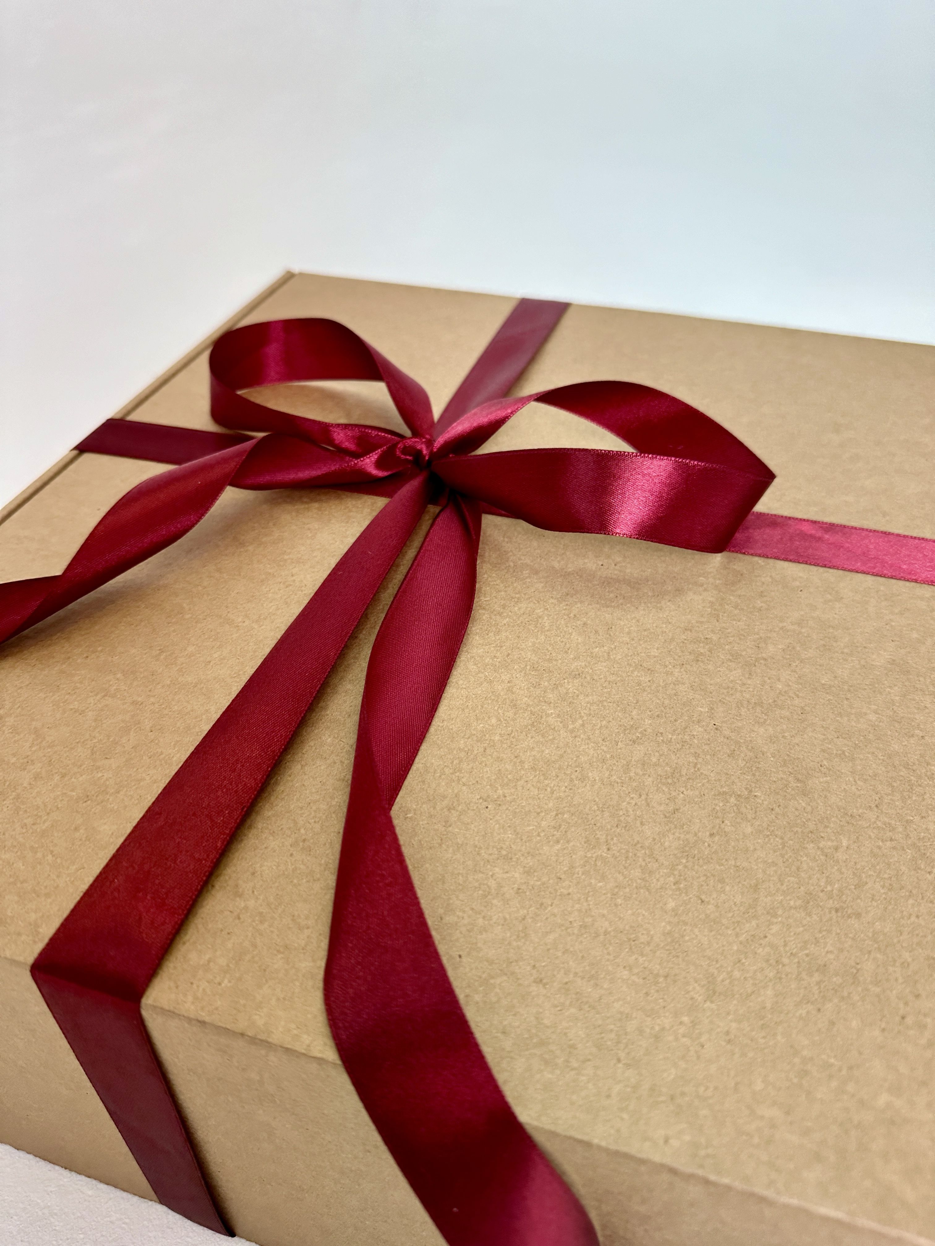 Большая подарочная коробка 37х37х14 см с бумажным наполнителем крафт и бордовой атласной лентой — это идеальное решение для тех, кто хочет упаковать подарок стильно, красиво и без лишних хлопот. Эта качественная и большая коробка станет настоящим украшением любого презента. Ее размеры 37х37х14 см позволяют упаковать даже объемные подарки: от мягких игрушек и косметических наборов до гаджетов, книг или сладостей. Коробка изготовлена из прочного картона, который сохраняет форму, а лаконичный дизайн в сочетании с благородной бордовой атласной лентой придает ей элегантность и универсальность.