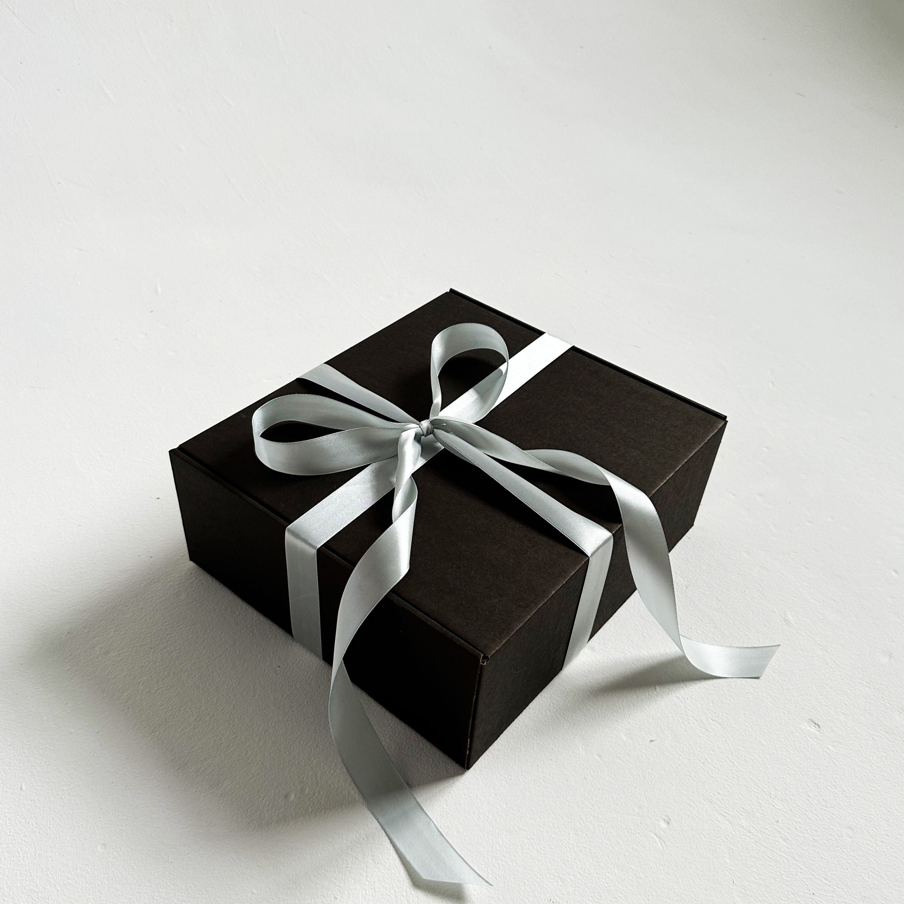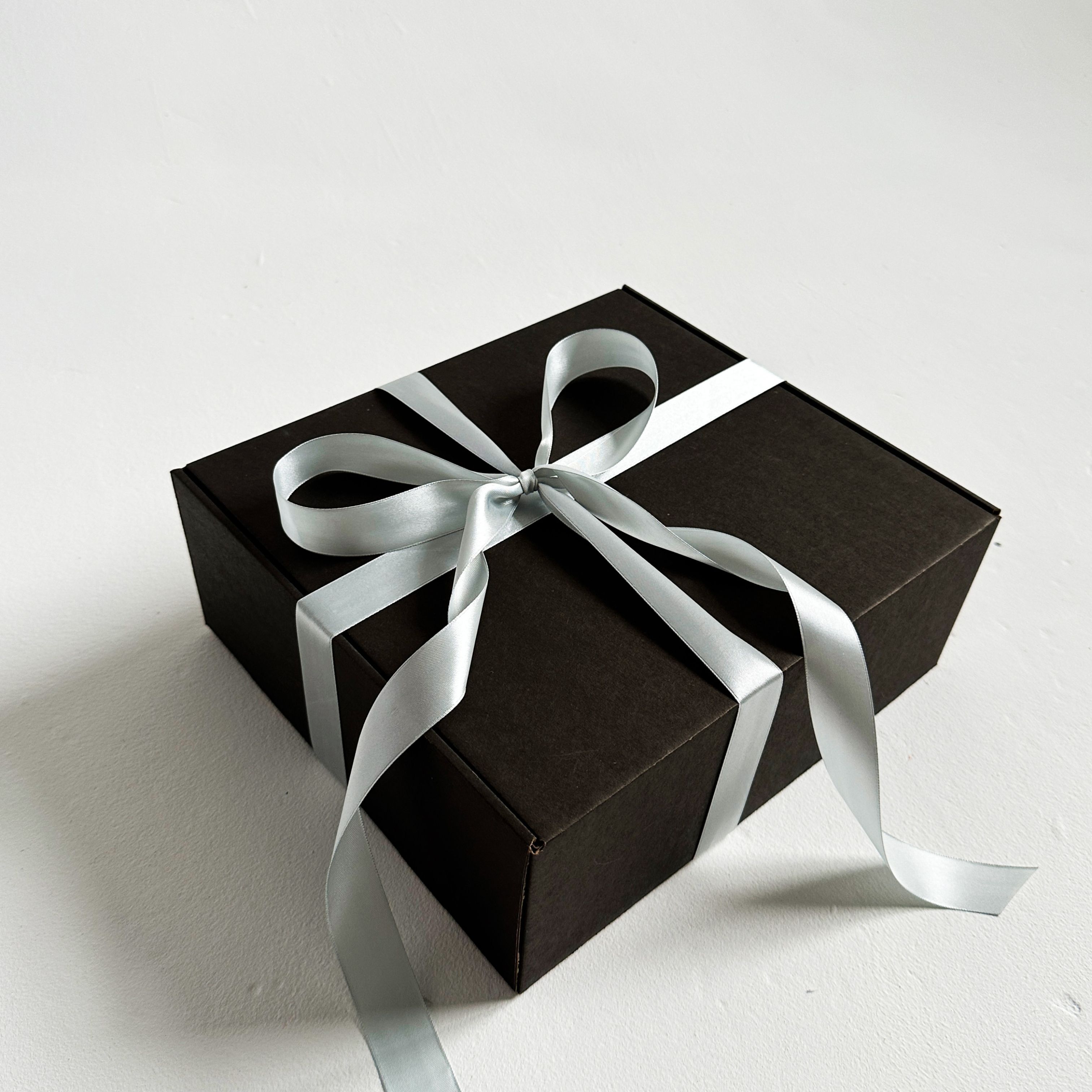 Подарочная коробка GILEV 27х25х10см черная с наполнителем и серебряной лентой