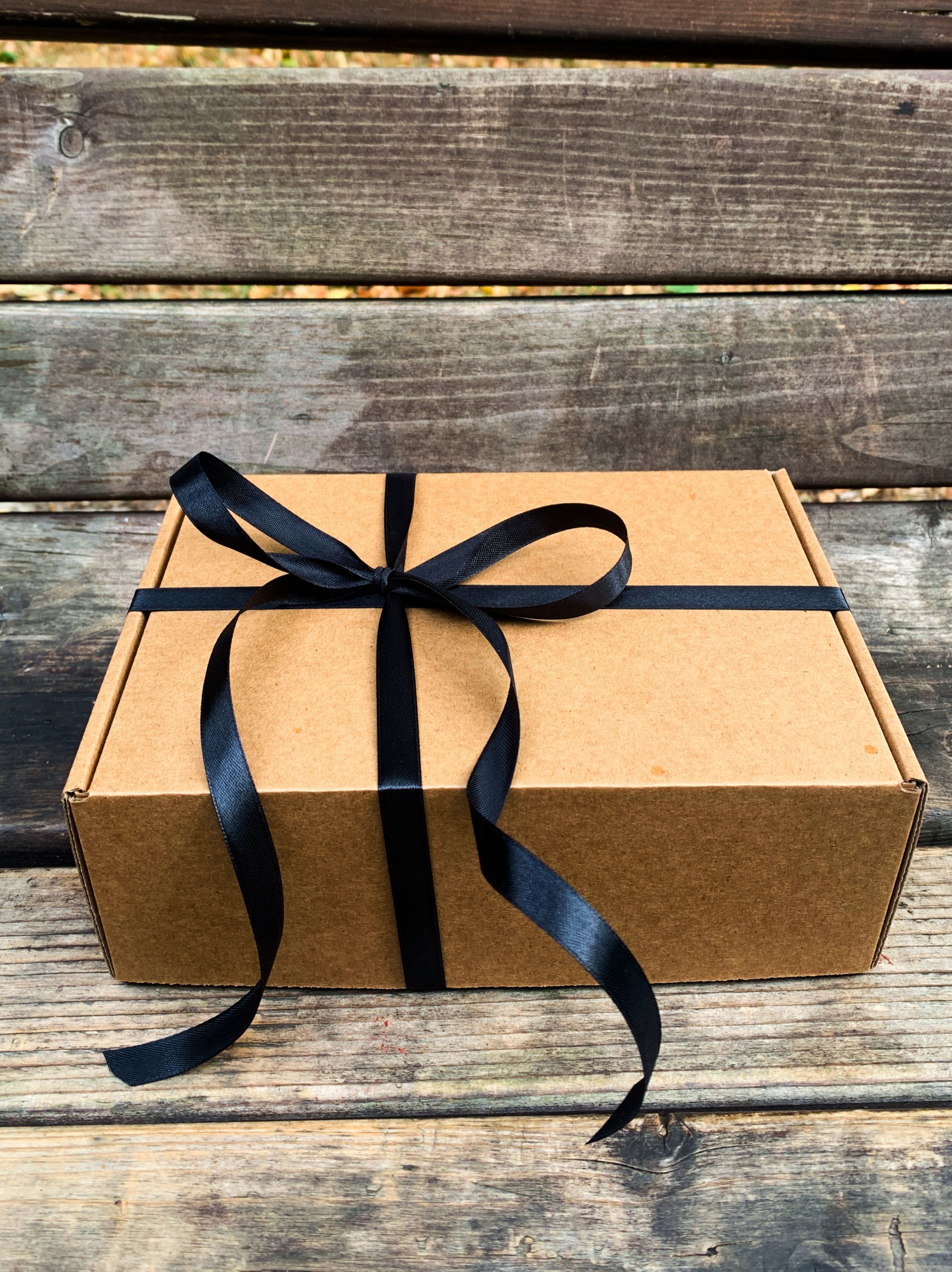 Подарочная коробка GILEV 22х16х8см с наполнителем крафт и черной лентой